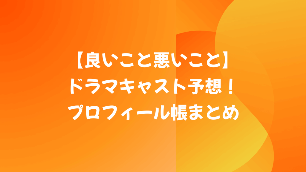 【良いこと悪いこと】ドラマキャスト予想!プロフィール帳まとめ