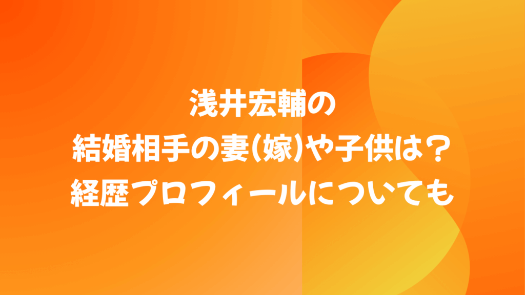 浅井宏輔の結婚相手の妻(嫁)や子供は?経歴プロフィールについても