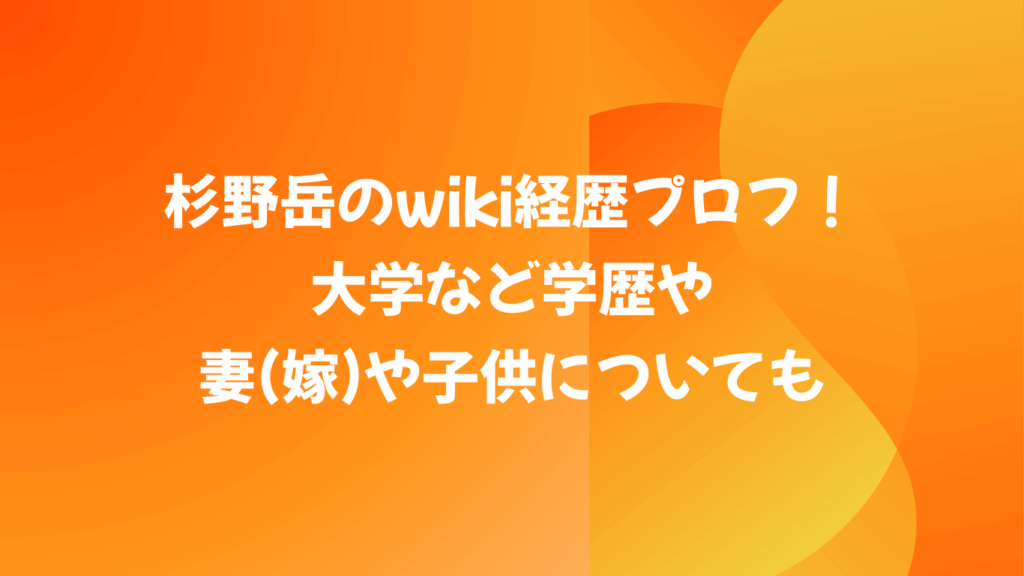 杉野岳のwiki経歴プロフ!大学など学歴や妻(嫁)や子供についても