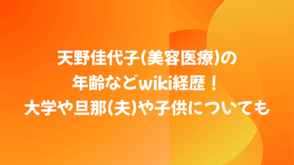 天野佳代子(美容医療)の年齢などwiki経歴!大学や旦那(夫)や子供についても